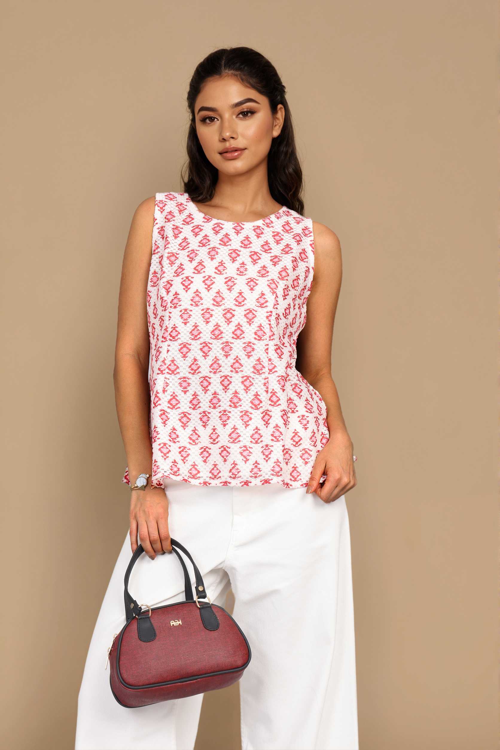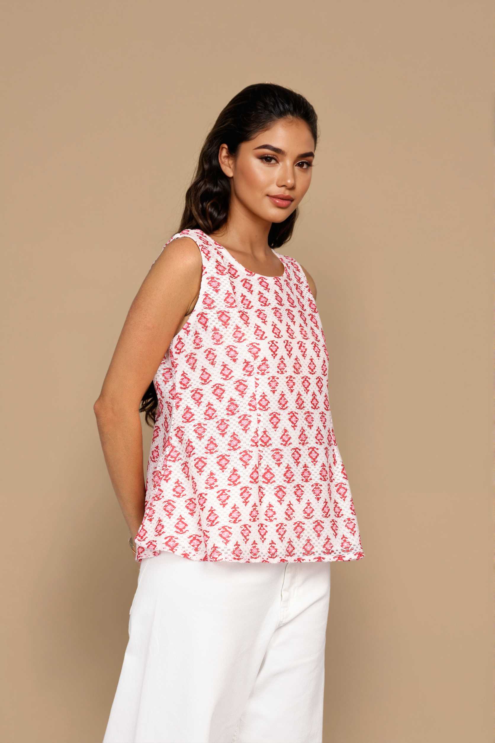 Style Tip:Soft crochet construction with airy comfort Ikat-inspiredfor a crafted feel Woven-effect detailing adds texture Sleeveless, easy to style for summer