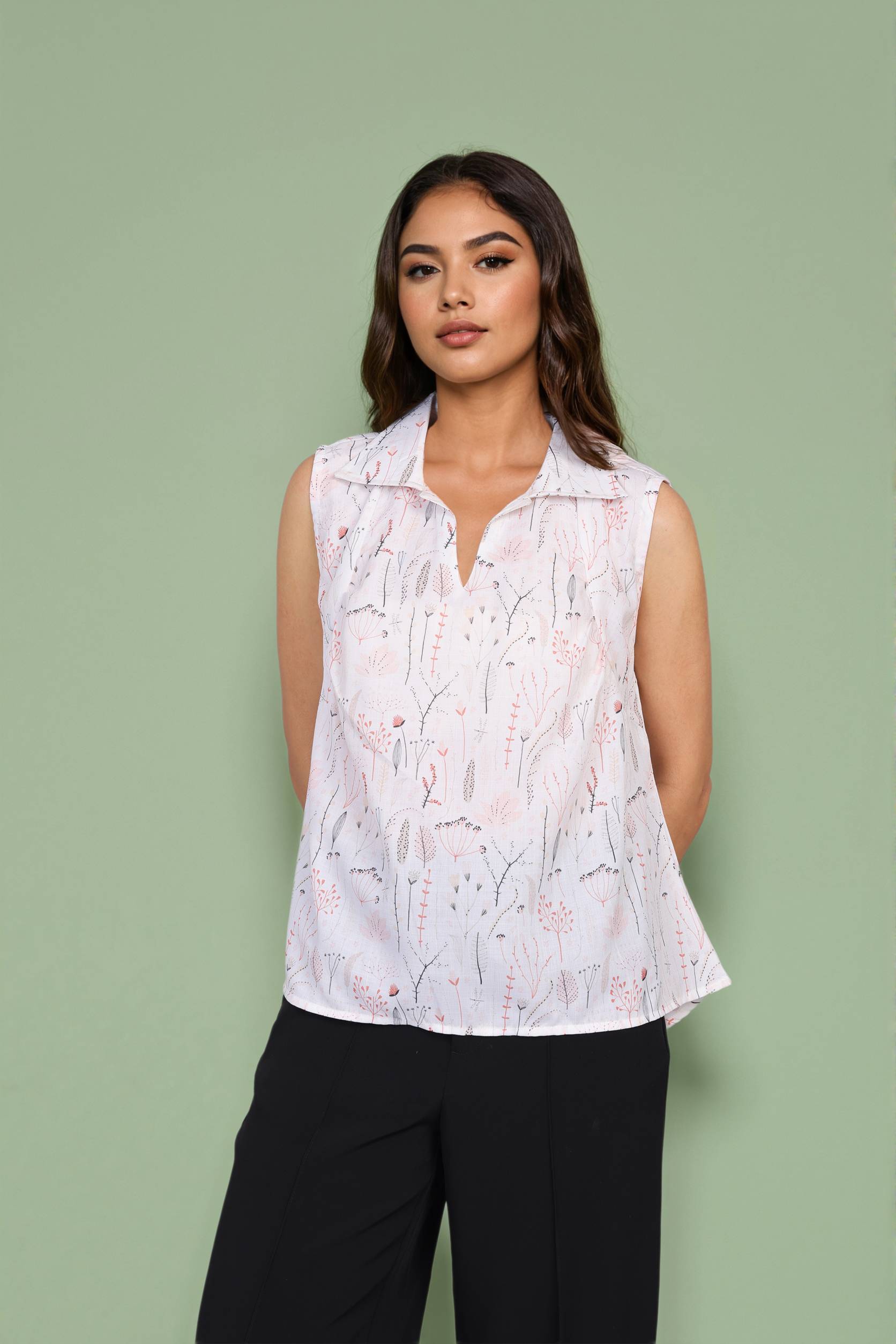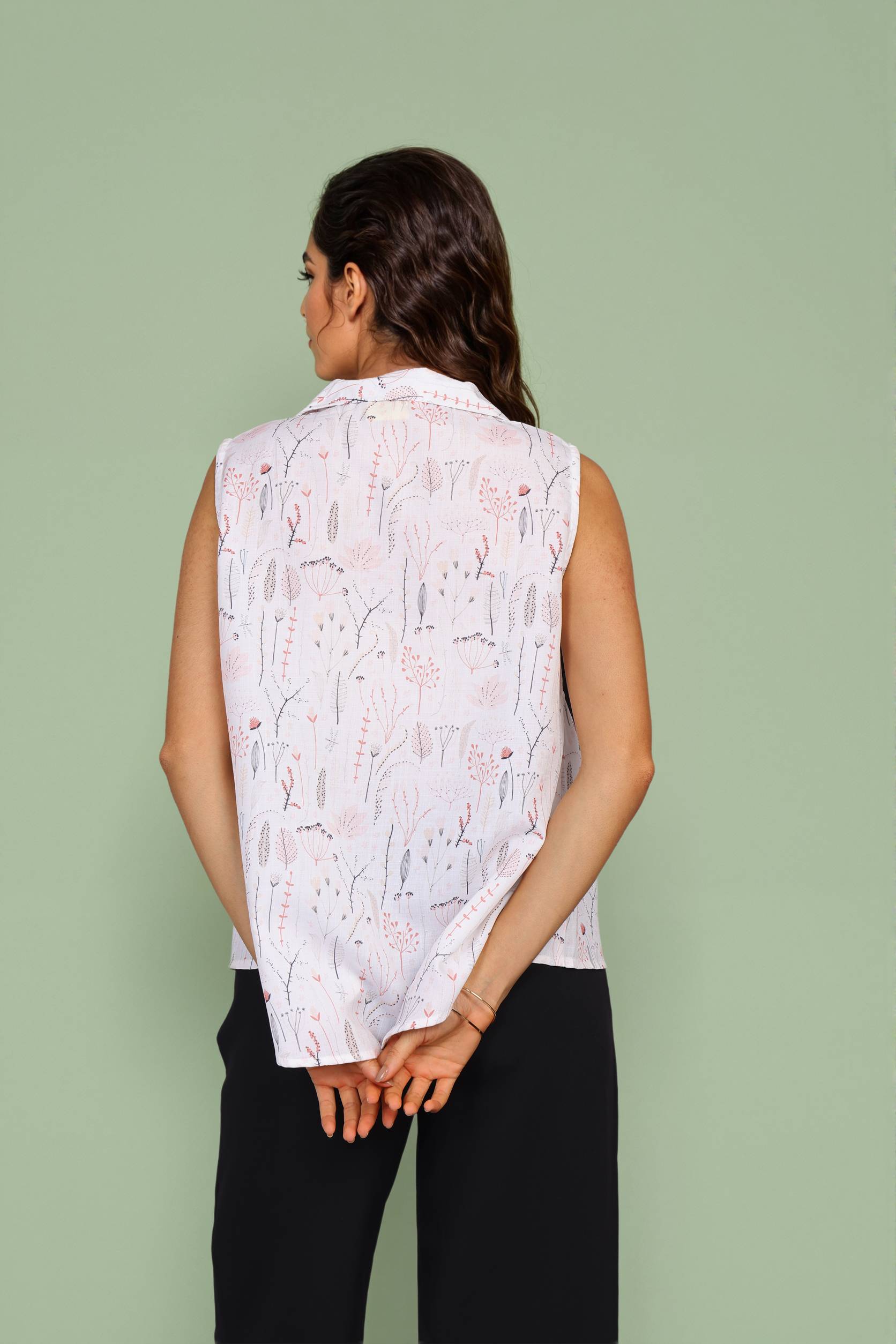 Style Tip:Soft, breathable fabric Delicate botanical floral sketch detailing Shirt-collar design for a polished look Sleeveless and lightweight for summer comfort
